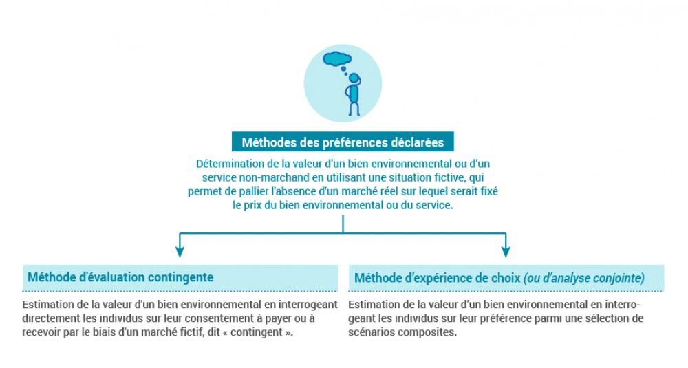Les méthodes des préférences déclarées utilisent une situation fictive afin de pallier à l’absence d’un marché réel qui fixerait le prix du bien environnemental ou du service.